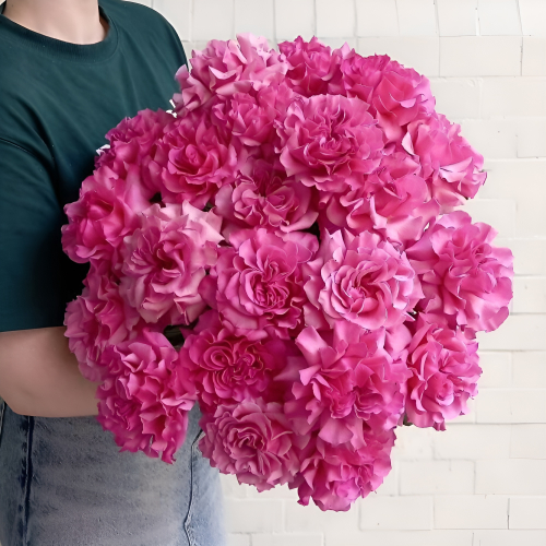 Пышные пионовидные розы с их нежными округлыми бутонами — воплощение элегантности и романтики. Идеальный выбор для свадьбы, юбилея или особого признания. Букет с доставкой на дом в Ломоносове.